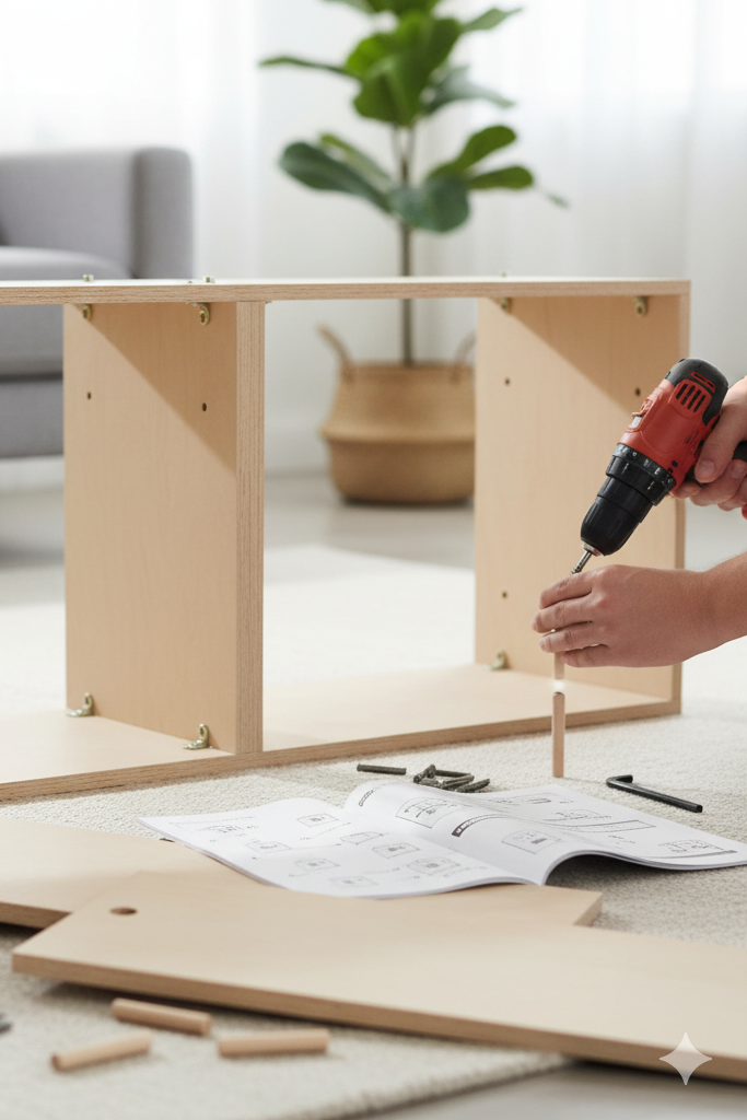 Stress-free setup of wardrobes, cabinets, and ready-to-build furniture.